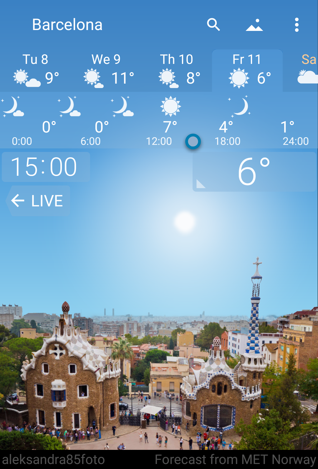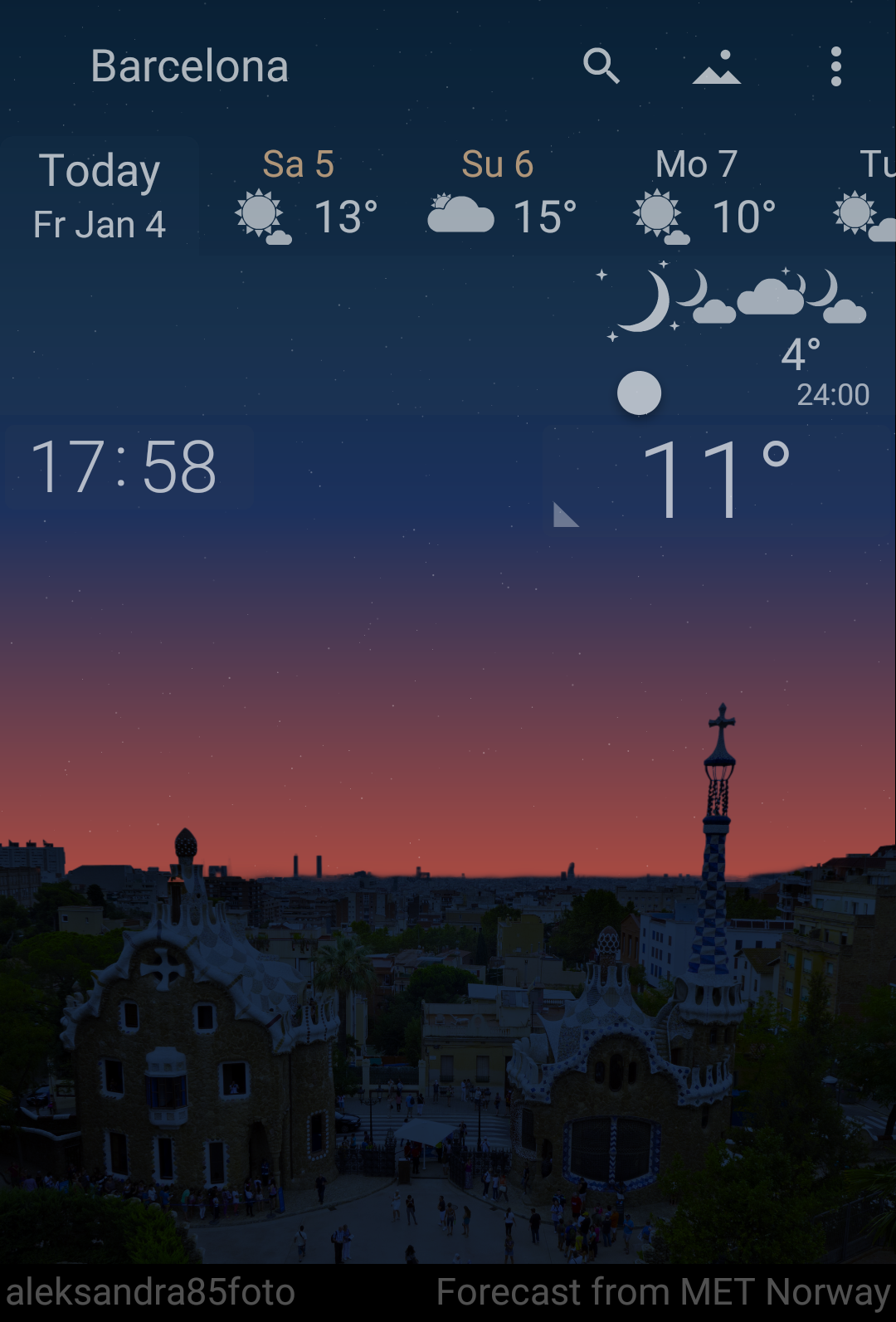 If you have a night photo for your landscape, that's awesome! YoWindow to show the night photo when it's getting dark.